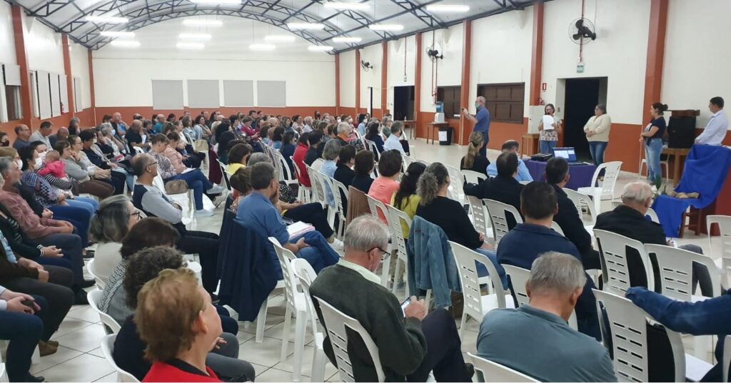 O prefeito de Tapejara, Evanir Wolff (BIG), acompanhado pela primeira-dama, Nara Terezinha Wolff e do secretário da Educação, Paulo César Langaro, participou do Seminário da Campanha da Fraternidade 2022 – Área Pastoral de Tapejara, que aconteceu na quarta-feira (16), no Centro Comunitário Paroquial.