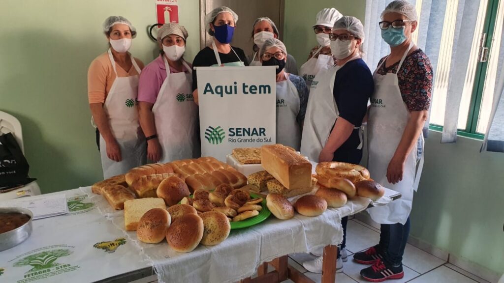 Nesta edição, oito mulheres aprenderam técnicas de panificação e derivados de arroz. Foram três dias de aulas teóricas e práticas com a realização de várias receitas, com a instrutora Marinez Demarco.