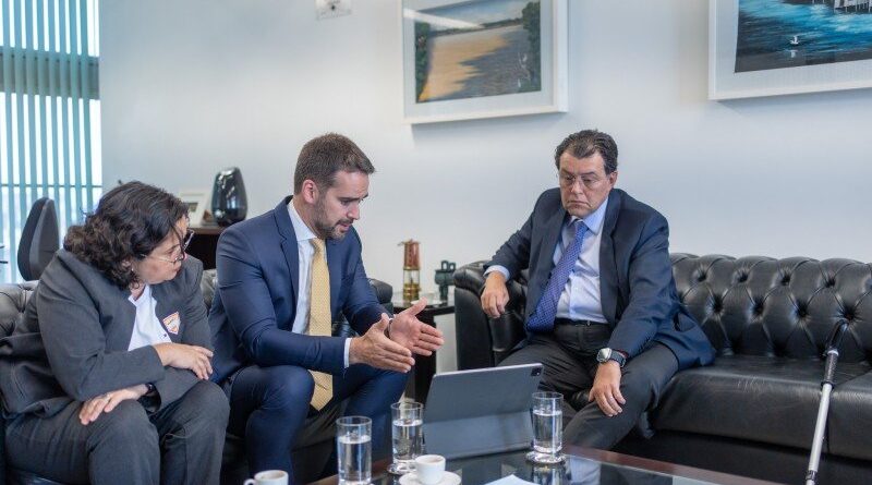 O governador do Rio Grande do Sul, Eduardo Leite, e a secretária estadual da Fazenda, Pricilla Santana, se reuniram com o relator da reforma tributária no Senado, Eduardo Braga, para apresentar os posicionamentos do governo em relação ao texto que tramita na Casa. No encontro, Leite ressaltou a necessidade de um entendimento, por parte do Legislativo, a respeito das particularidades da situação fiscal do Estado a fim de evitar que a reforma não contemple as demandas para o desenvolvimento do RS.