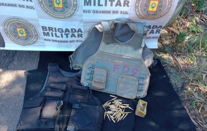 Dentro do Kia Cerato estavam dois homens. A Brigada Militar foi avisada e, ao chegar ao local, os suspeitos haviam fugido, deixando abandonado o automóvel, que tinha placas clonadas. No interior do carro, havia munições, dois coletes balísticos e um suposto plano de fuga.
