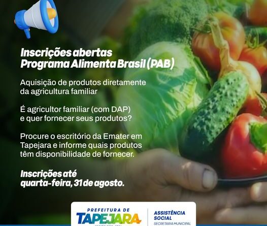 Tapejara abre inscrições para o Programa Alimenta Brasil