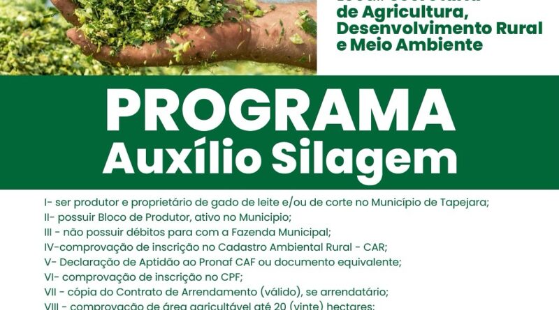 Inscreva-se no Programa Auxílio Silagem e fortalecimento da produção rural de Tapejara. De 29/10 a 29/11, na Secretaria de Agricultura!