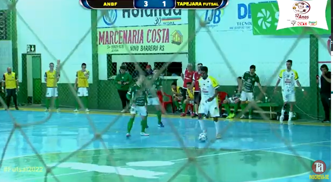 Os dois líderes do Grupo F, ANBF e Tapejara Futsal entraram em quadra na noite de sábado, 01/10 no Ginásio Municipal de Novo Barreiro já classificados para a próxima fase do Gauchão 2022 Série B, com o objetivo de disputar a liderança do Grupo e traçar os próximos confrontos de ambos na competição, já que seria a última rodada do returno da segunda fase. Os donos da casa saíram na frente logo nos minutos iniciais da partida, com bela jogada que deixou Arthur livre, frente a frente com Taibi que não teve o que fazer. Nos segundos finais do primeiro tempo, após a cobrança de um lateral, Gio deu um chute forte e direto que explodiu no travessão e no rebote Ângelo deixou tudo igual. No segundo tempo as equipes jogarram de igual para igual até os donos da casa ficaram à frente do placar novamente com gol de Bieh. Ambas equipes perderam oportunidades de gol, quando Cássio Sossella optou pelo goleiro linha, utilizando Ângelo para a função, o que não deu certo e a equipe de Tapejara levou o terceiro gol novamente pelos pés de Bieh. Tapejara insistiu e tentou diminuir mas o resultado final foi este: ANBF 3 X 1 Tapejara Futsal 1. O goleiro Taibi ainda sentiu dores nas costas após um lance em quadra e foi substituído por Marcos Com os resultados da rodada, ANBF encara o Giruá e Tapejara Futsal a APF de Gentil. Na próxima fase é “mata-mata”, ou seja o melhor de duas partidas segue na competição.