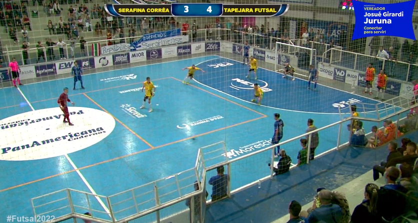 Jogando na noite de sábado, 17/09 no Ginásio Municipal Irceu Antônio Gasparin de Serafina Corrêa, a equipe Tapejara Futsal enfrentou a ASF. Na busca de um resultado positivo, a “Onça” partiu para ataque deste os segundos iniciais e aos 6 minutos da primeira etapa Romarinho abriu o placar após uma jogada bem trabalhada. Com mais posse de bola e muito bem postados em quadra na primeira etapa, os tapejarenses ampliaram com Matheus mas no finalzinho os donos da casa descontaram com Dedé. No segundo tempo de jogo a ASF voltou melhor em quadra e levou perigo para a meta de Taibi, mas foi o Tapejara Futsal que aproveitou a oportunidade e ampliou para 3 X 1 com mais um gol de Romarinho. Na segunda etapa, a ASF marcou ainda com Gabriel (2 vezes) e o Tapejara Futsal (1 vez) com Feijão, fechando o placar em 4 X 3 para o Tapejara Futsal. O craque do jogo foi o goleiro Taibi que fez importantes defesas para garantir os 3 pontos. No outro jogo da chave, ANBF venceu a AFSJI por 4 X 1 e com a combinação de resultados o Tapejara Futsal assumiu a segunda colocação da chave. No próximo sábado Tapejara Futsal joga em casa onde enfrenta o lanterna AFSJ com cobertura das plataformas digitais do Portal Tapejara Agora.