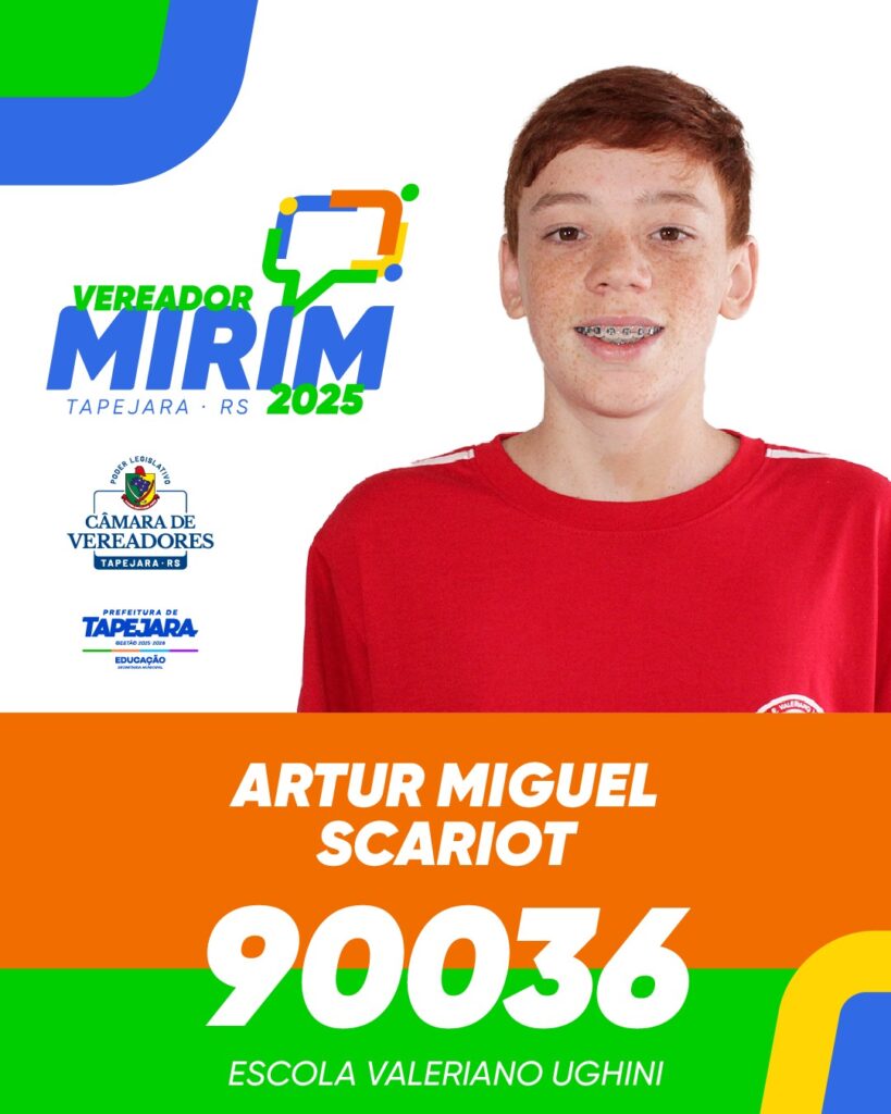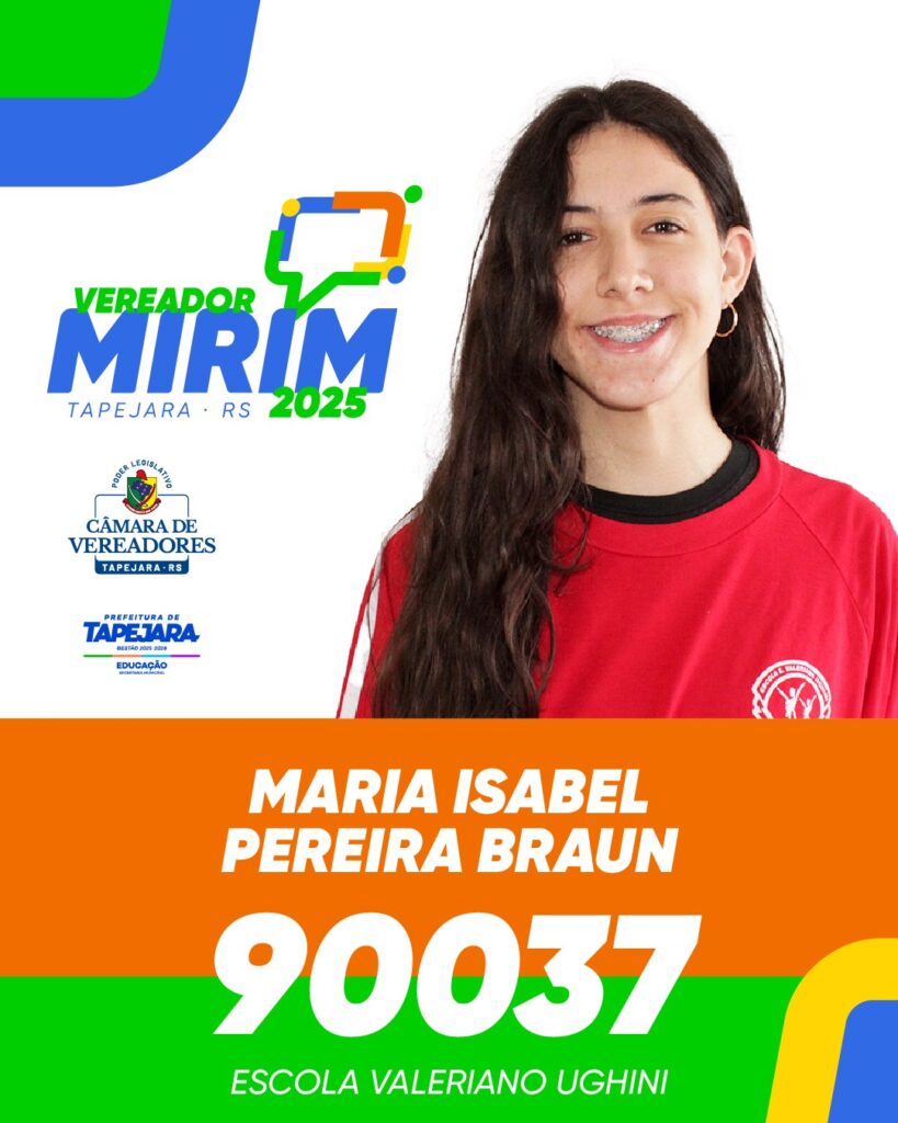 Nesta edição, a Escola Valeriano Ughini elegerá 01 (um) Vereador(a) Mirim, que terá a oportunidade de representar seus colegas, aprender sobre o papel do legislativo e vivenciar de perto a cidadania na prática.