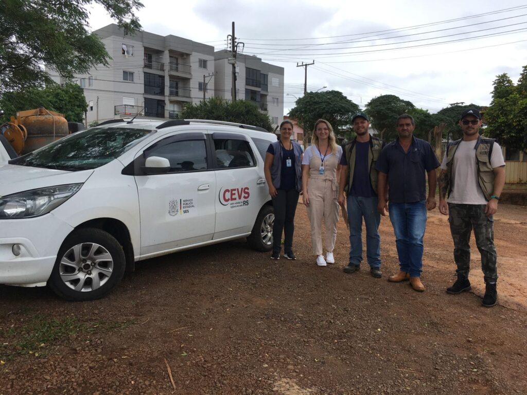 Na quinta-feira (15), representantes do Centro Estadual de Vigilância em Saúde (CEVS) por meio da 6ª Coordenadoria Regional de Saúde de Passo Fundo estiveram em Tapejara para realizar uma vistoria e acompanhamento do trabalho desempenhado pelo setor de Vigilância Ambiental em Saúde nos pontos estratégicos para o combate à dengue.