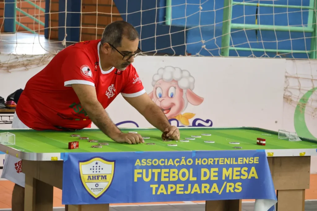 Tapejara foi palco, no último sábado (4), da IV Etapa Estadual Individual de Futebol de Mesa – Regra 12 Toques, encerrando a temporada 2025 da modalidade no Rio Grande do Sul. O evento foi realizado nas dependências do Ginásio Albino Sossella, sob organização da Federação Gaúcha de Futebol de Mesa (FGFM), em parceria com a Associação Hortenilense de Futebol de Mesa (AHFM), e contou com o apoio da Prefeitura de Tapejara.