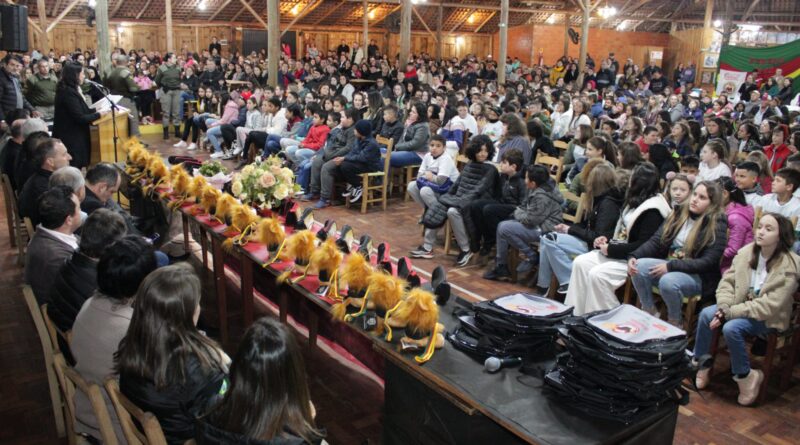 Mais de mil pessoas prestigiaram a formatura de 353 alunos do Programa Educacional de Resistência à Violência e as Drogas (Proerd), realizada na noite de sexta-feira (19), no CTG Manoel Teixeira, em Tapejara. Na ocasião, os estudantes dos quintos anos de 12 escolas da rede pública de Tapejara, Água Santa, Santa Cecília do Sul e Vila Lângaro, participaram do ato promovido pela Brigada Militar.