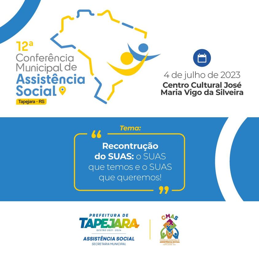 Venha contribuir com propostas para consolidar e fortalecer a assistência social, mobilizando os usuários da Rede SUAS e a comunidade. A XII Conferência Municipal terá como tema central: “Reconstrução do SUAS: O SUAS que temos e o SUAS que queremos”. Será um momento desafiador para discutirmos os indicadores da questão social atual e alcançarmos o SUAS dos nossos sonhos.