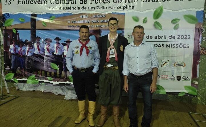 No último final de semana, entre os dias 21 e 23, aconteceu o 33° Entrevero Cultural de Peões do Estado, em Palmeira das Missões. Tapejara esteve representado por Leonardo Aloisio Andreolla, do CTG Manoel Teixeira, da 7ª Região Tradicionalista, que conquistou o título de 3º Guri Farroupilha. Disputaram o título de peão, guri e piá farroupilha do Estado, representantes das 30 regiões tradicionalistas do RS. A Administração Municipal parabeniza Leonardo pela conquista. Esteve presente no evento o secretário da Esporte, Cultura, Lazer e Turismo, Claudio Girardi, e o coordenador da Ascom, Ricardo Martins.