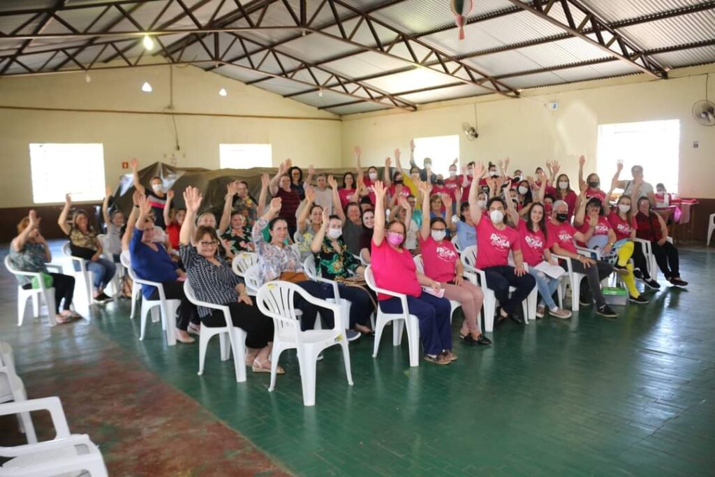 Nesta terça-feira (19), a Secretaria da Saúde de Tapejara promoveu mais uma Tarde da Mulher Rural. As profissionais da Estratégia Saúde da Família (ESF) do Bairro São Paulo estiveram na Comunidade de Linha Três palestrando para mulheres das comunidades de Linha Quatro, Marchiori, Coroado Alto e Coroado Baixo. O objetivo da ação é abordar os cuidados e a prevenção aos cânceres de útero e de mama através da campanha Outubro Rosa.