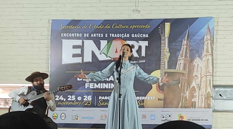 Tatiana da Rosa Crestani representou o CTG Manoel Teixeira, no ENART 2023 na categoria Declamção Feminina Adulto, que aconteceu em Santa Cruz do Sul neste último final de semana.
