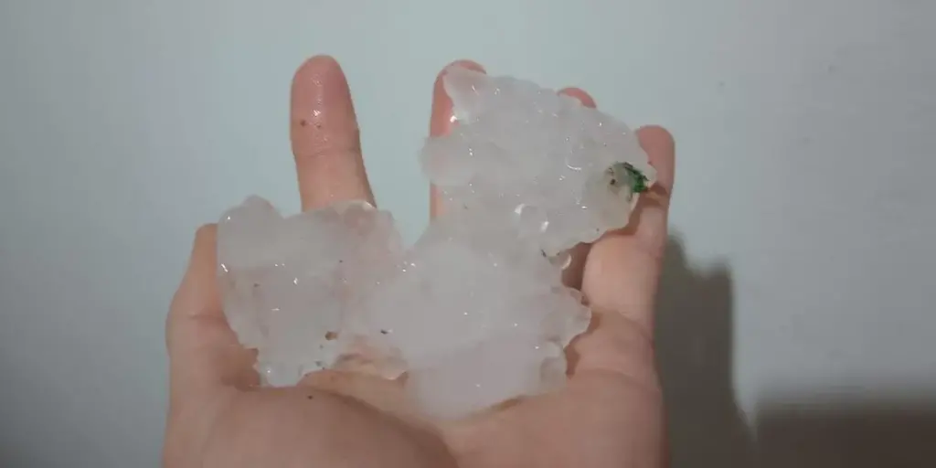 Imagens publicadas por moradores nas redes sociais mostram o tamanho do granizo que caiu na cidade, com pedras de médio e grande tamanho, e em alguns locais com granizo pontiagudo, que tende a causar ainda mais estragos em telhados de moradias.