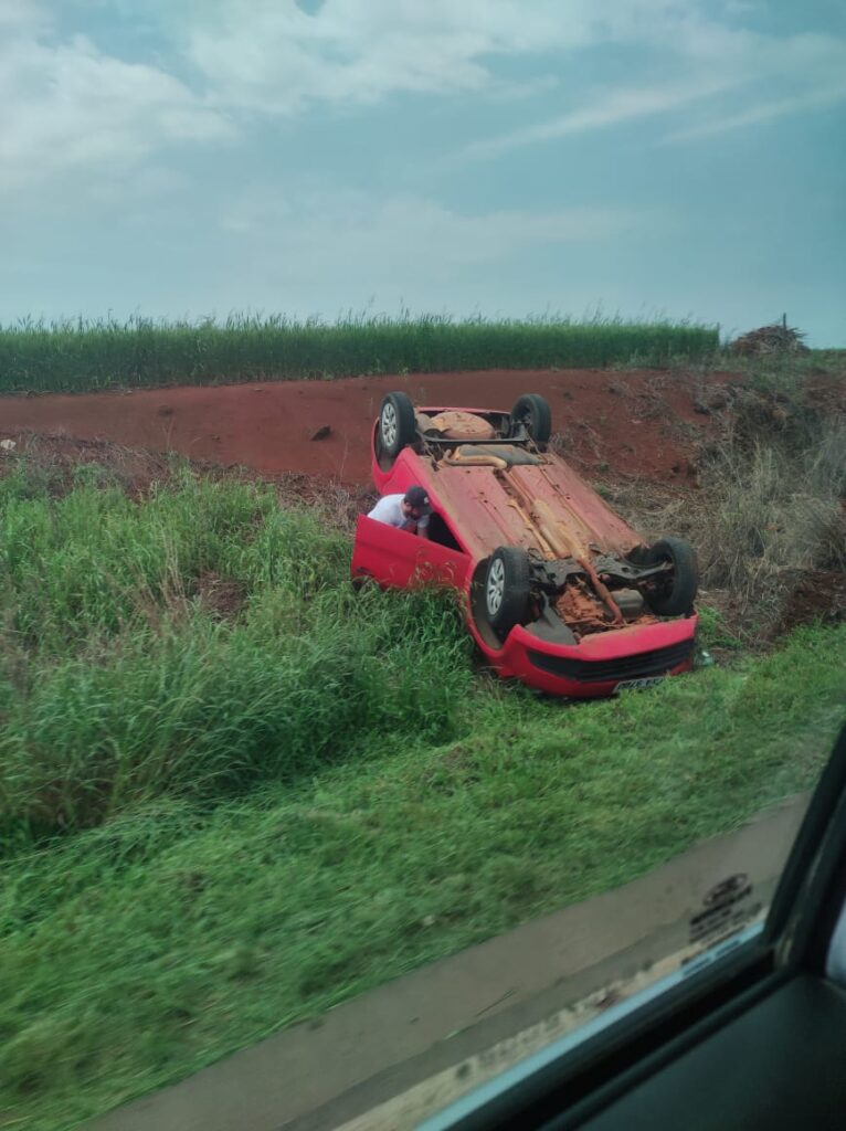 O tombamento de um veículo Gol, de cor vermelha, foi registrado no início da tarde de hoje (30), por volta das 12h15, na RS-463, próximo da Vila Rocha, em Vila Lângaro.