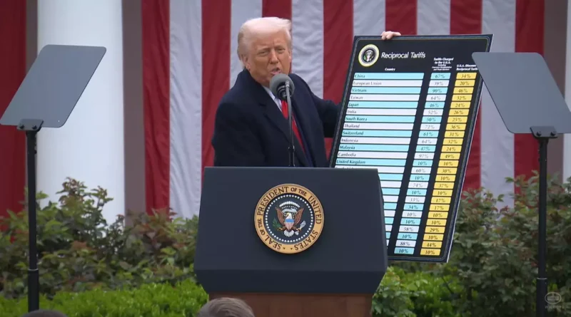 Trump exibiu uma tabela com exemplos de altas tarifas cobradas por vários países sobre produtos americanos que ingressam em suas economias.