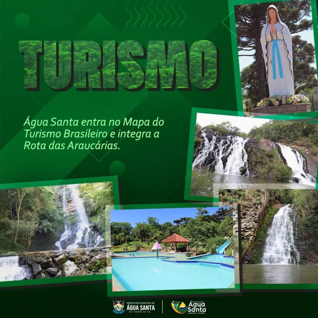 Nosso querido município de Água Santa agora faz parte do Mapa do Turismo Brasileiro e integra a Rota das Araucárias. Com este reconhecimento através do Ministério do Turismo, Água Santa entra nas regiões de desenvolvimento com potencial turístico.