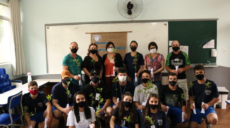 Na quarta-feira (17), a prefeita em exercício de Sananduva, Eliani Mezadri, e o secretário da Infraestrutura Rural, Agricultura e Meio Ambiente, Voldinei João Sebben, estiveram presentes na I Jornada do Empreendedorismo Sustentável, promovido pelo Colégio Estadual Sananduva. O Plano de Governo do Executivo Municipal aborda a criação do Programa Um Sananduvense, Uma Árvore, em que para cada sananduvense que nasce uma muda de árvore vai ser destinada ao plantio, com a missão de preservar e incentivar o desenvolvimento sustentável do Município. Para a execução do Programa neste primeiro ano, a Secretaria da Infraestrutura Rural, Agricultura e Meio ambiente disponibilizou a turma 203, do 2º ano do ensino médio da instituição de ensino, mudas de árvores que representam 133 sananduvenses que nasceram no ano de 2020. A turma trabalhou sobre o tema “combate às alterações climáticas – ODS 13”, e distribuiu as mudas aos visitantes da Jornada. A prefeita em exercício, Eliani Mezari, conversou e saudou os alunos e professores. “Estudei nesse Colégio. A formação que recebi contribuiu para que eu alcançasse meus objetivos. Parabenizo os alunos e professores do Colégio Estadual Sananduva pela realização da Jornada. Trabalhos como esse, de preocupação com o nosso planeta, são dignos de reconhecimento. Também agradecemos pela parceria no Programa Um Sananduvense, Uma Árvore”, pontuou Eliani. O Colégio Estadual Sananduva é uma das 10 escolas dentre as 106 da 15ª Coordenadoria Regional de Educação de Erechim que participa como escola-piloto do Programa Novo Ensino Médio, trabalhando com diferentes itinerários que auxiliam na aprendizagem e formação dos alunos e cidadãos.