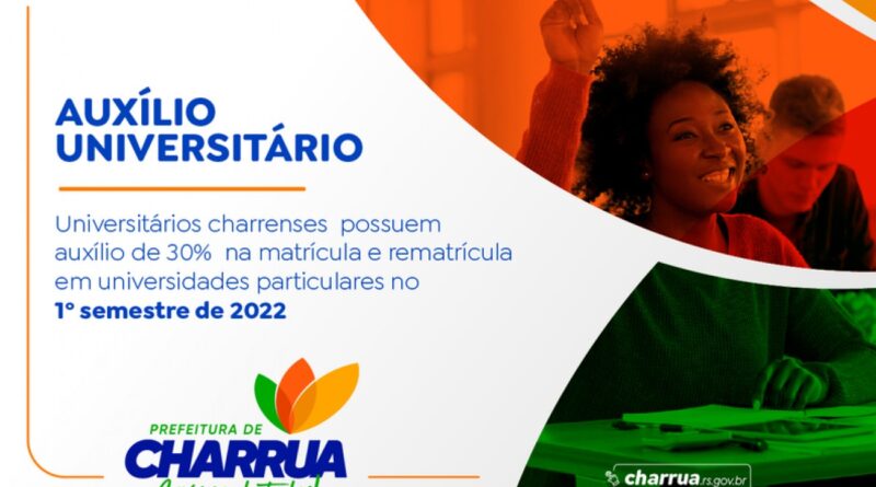 Os universitários charruenses possuem subsídio de 30% sobre as matrículas e rematrículas em universidades particulares, neste primeiro semestre de 2022.
