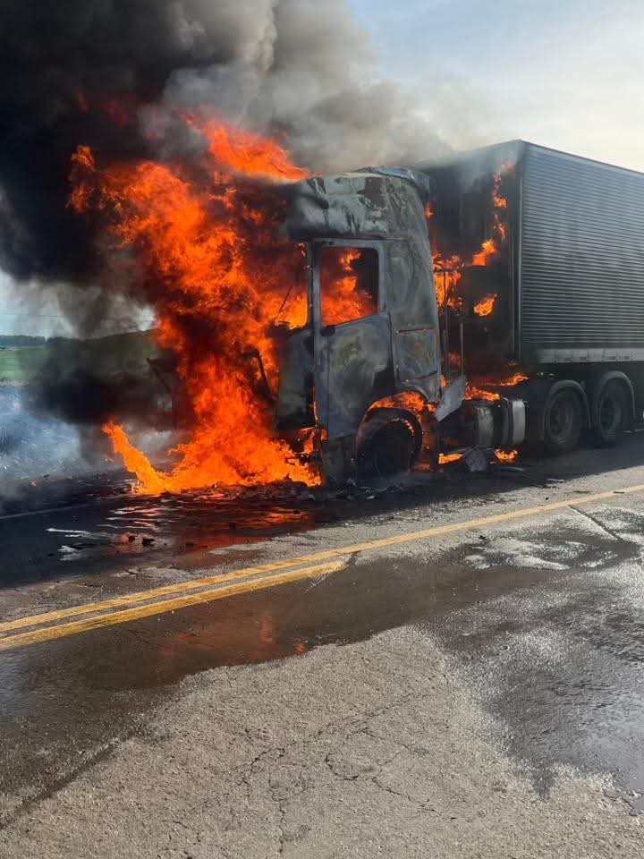 O caminhão pertence a uma transportadora de Porto Xavier e estava carregado com alface, carga que foi embarcada na cidade de Mendonza, na Argentina, com destino final ao Rio de Janeiro. O motorista, de nacionalidade argentina, relatou que percebeu o incêndio ao olhar pelo retrovisor. Ele conseguiu encostar o veículo e sair a tempo, sem sofrer ferimentos.