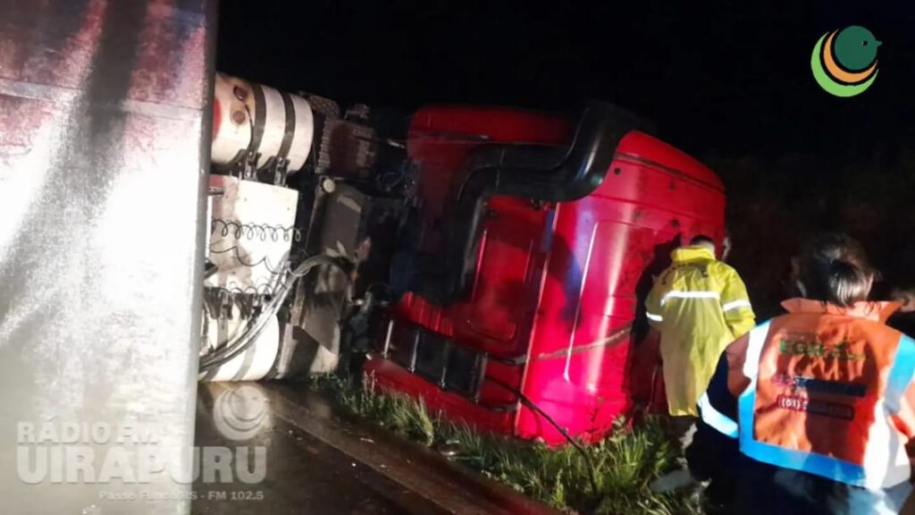 Na noite desta terça-feira (08), equipes de resgate atendem a um tombamento de carreta na ERS-463, entre Coxilha e Tapejara.