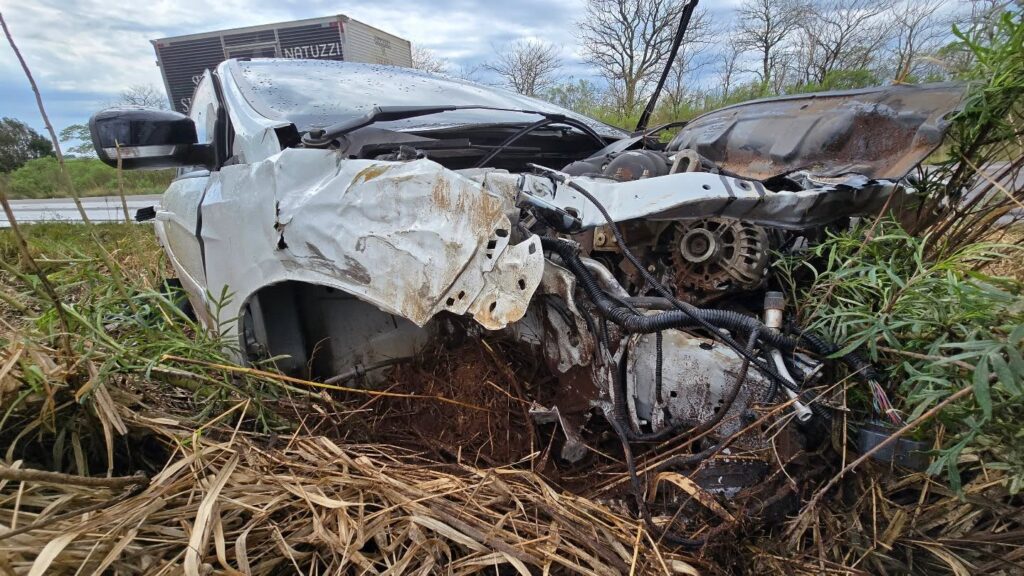 O Ford Focus ficou totalmente destruído e teve perda total, enquanto o caminhão sofreu danos de grande monta.