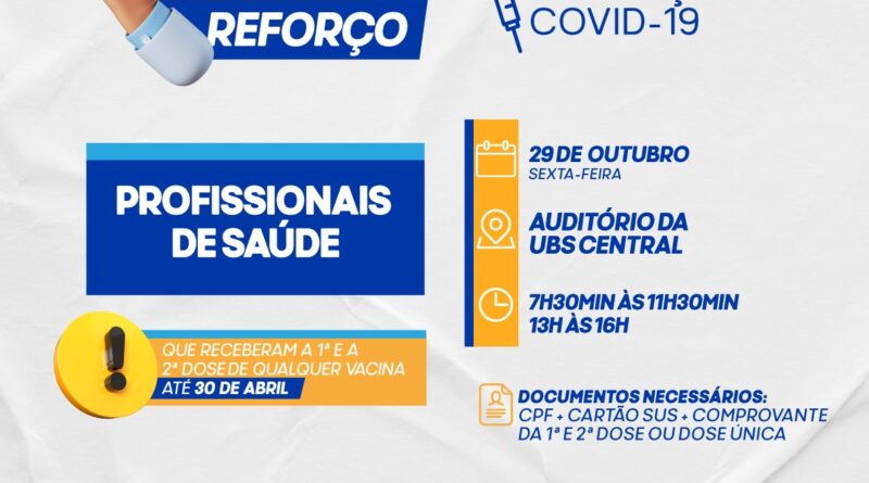 Vacinação da dose de reforço contra Covid-19 para profissionais de saúde que receberam a segunda dose de qualquer imunizante até 30 de abril