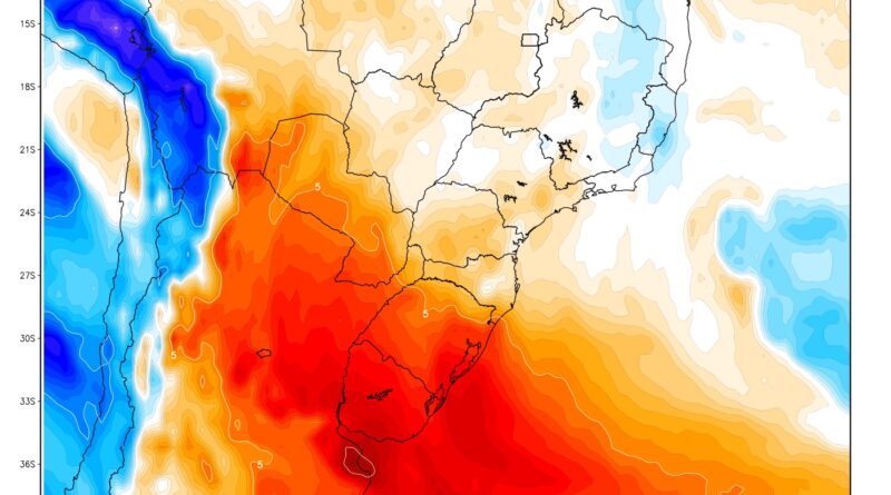 Este sábado, ainda teve o domínio de ar muito seco, teve mais uma madrugada com mínima que caiu abaixo de zero no estado gaúcho com 1,7ºC negativo em São José dos Ausentes. Nos próximos dias, entretanto, a tendência é de elevação das mínimas e principalmente das máximas no Rio Grande do Sul. Isso porque uma grande massa de ar quente vai se instalar durante a próxima semana sobre as latitudes médias da América do Sul com temperaturas elevadas para esta época do ano no Sul do Brasil, Paraguai, Uruguai e no Centro da Argentina.