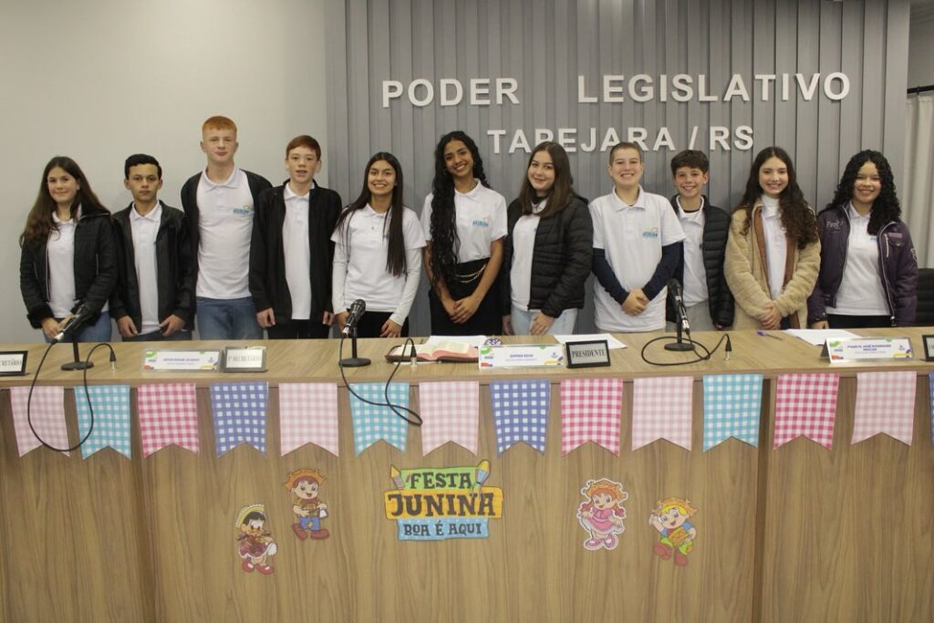 Na noite de quinta-feira, 26 de junho, a Câmara Municipal de Tapejara realizou a primeira Sessão Ordinária do Parlamento Mirim 2025. A Sala de Sessões Zalmair João Roier ficou lotada com a presença de familiares, amigos, professores e representantes das escolas, que prestigiaram esse momento especial dos jovens parlamentares.