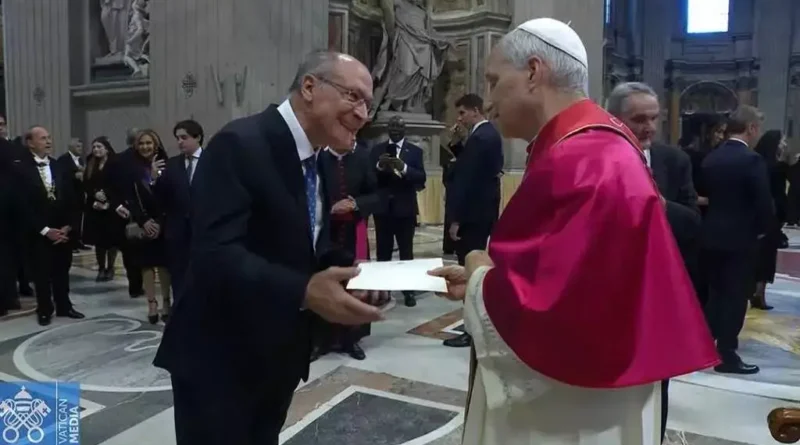 Vice-presidente Geraldo Alckmin entrega ao papa convite para COP30