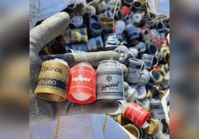 Para a reciclagem, a fábrica utiliza tampas de garrafa, filmes plásticos e garrafas PET da cachaça.
